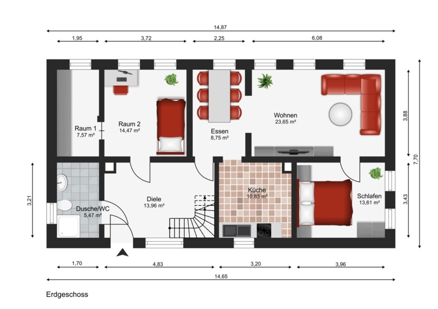 Mit insgesamt knapp 160 Quadratmetern Wohnfläche bietet diese Immobilie eine Menge Platz für Ihre Familie.