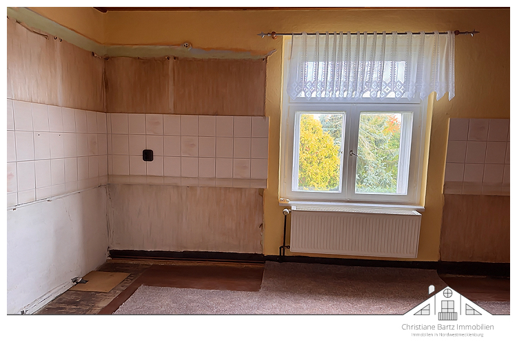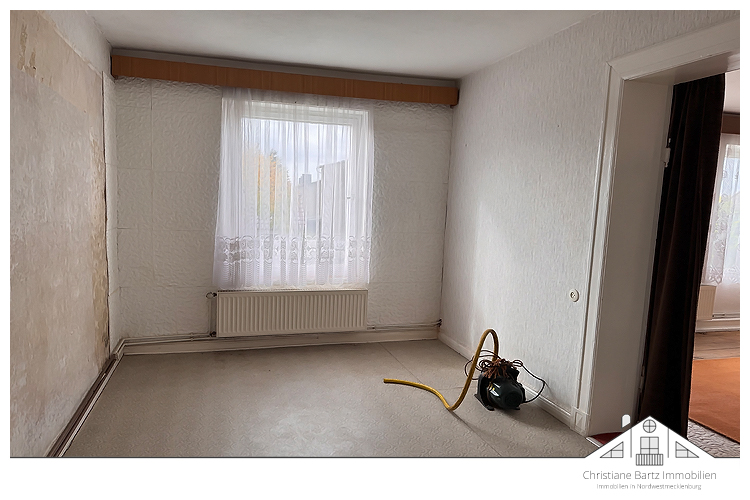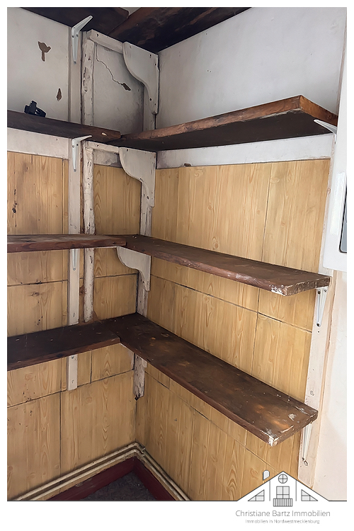 Im Erdgeschoss befindet sich eine vollständige Wohneinheit (ca. ??? m2 Wohnfläche) mit insgesamt 3 Zimmern, einer für das Haus typischen Wohndiele, einer Küche nebst Hauswirtschaftsraum und ein Wannenbad. Von der Küche gelangt man in den Teilkeller (ehemals für Vorräte). Dieser umfasst eine Fläche von ca. 50 Quadratmetern.