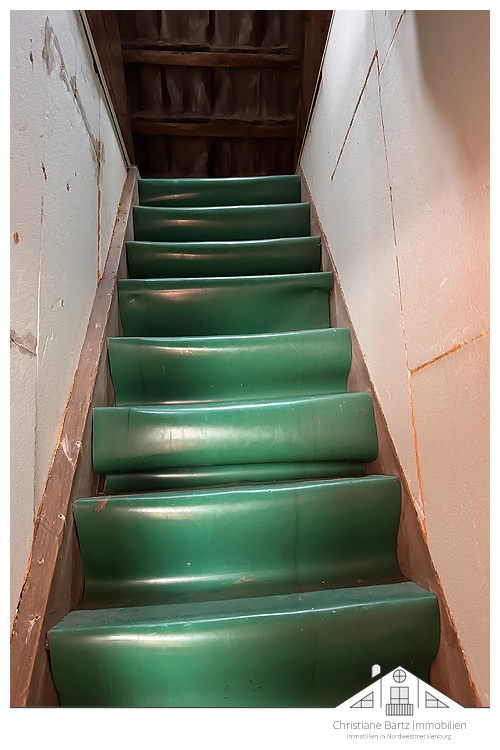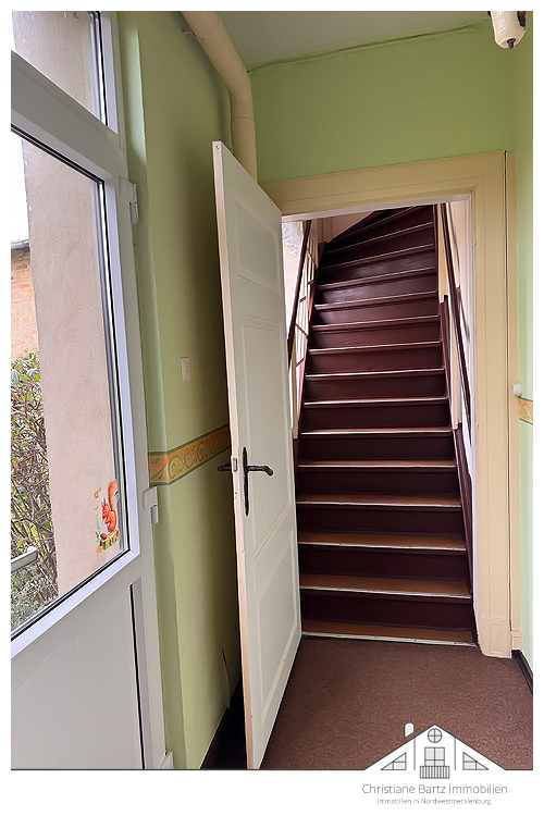 Der Zugang zum Obergeschoss erfolgt über einen separaten Eingang von der rückwärtigen Hausseite aus.