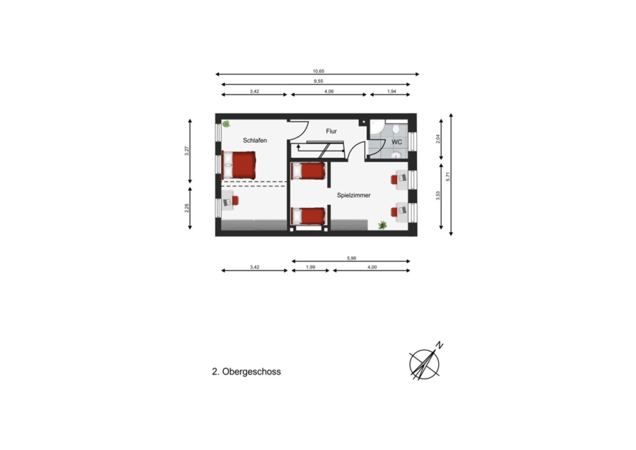 Weiterhin stehen 3 Vollgeschosse zur Verfügung. Der Dachboden dient als Lager- und Abstellflächen. Hier ist auch die Zentralheizung mit Warmwasserspeicher untergebracht.