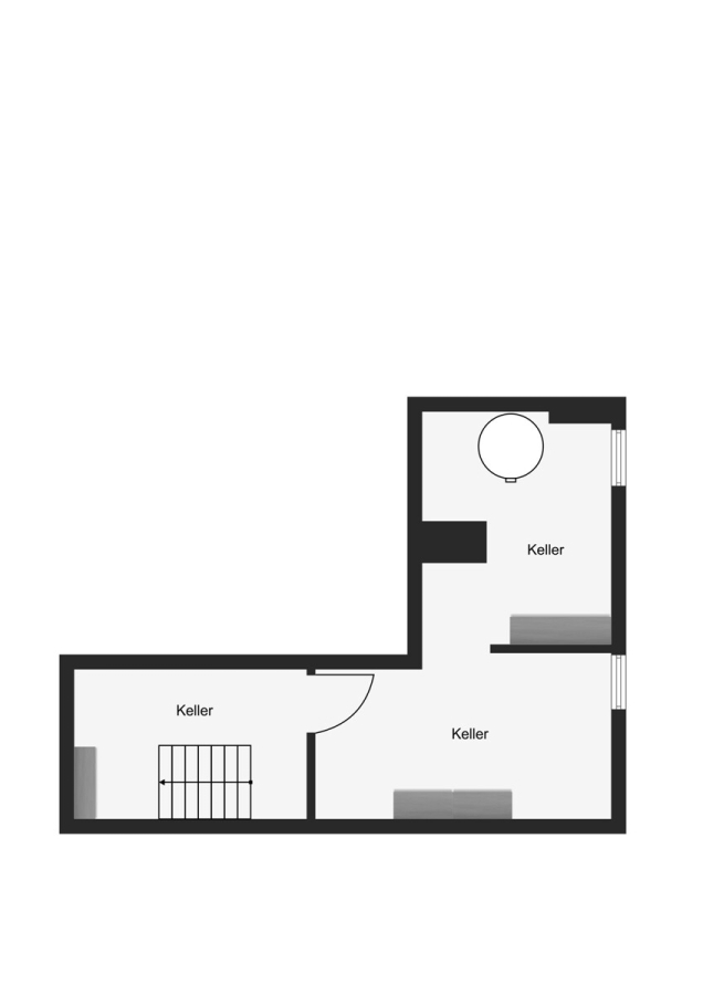 Verbunden sind diese durch ein großzügiges Treppenhaus, welches jedoch im Obergeschoss endet.