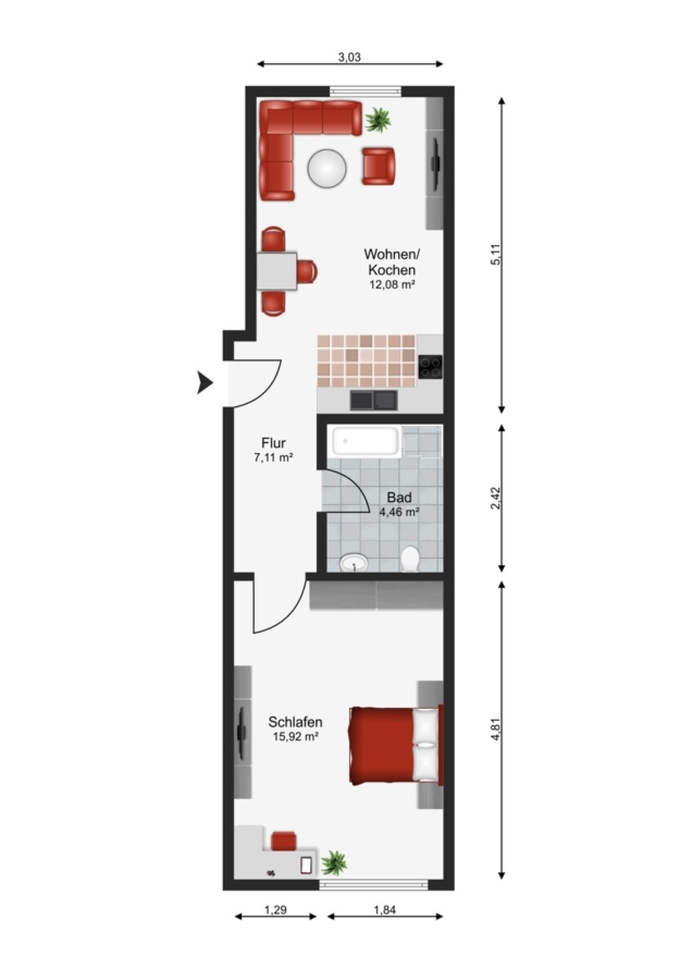 Der Einbau einer Küche, oder aber auch eine Möblierung der gesamten Einheit, wäre nach Absprache mit dem Eigentümer möglich.